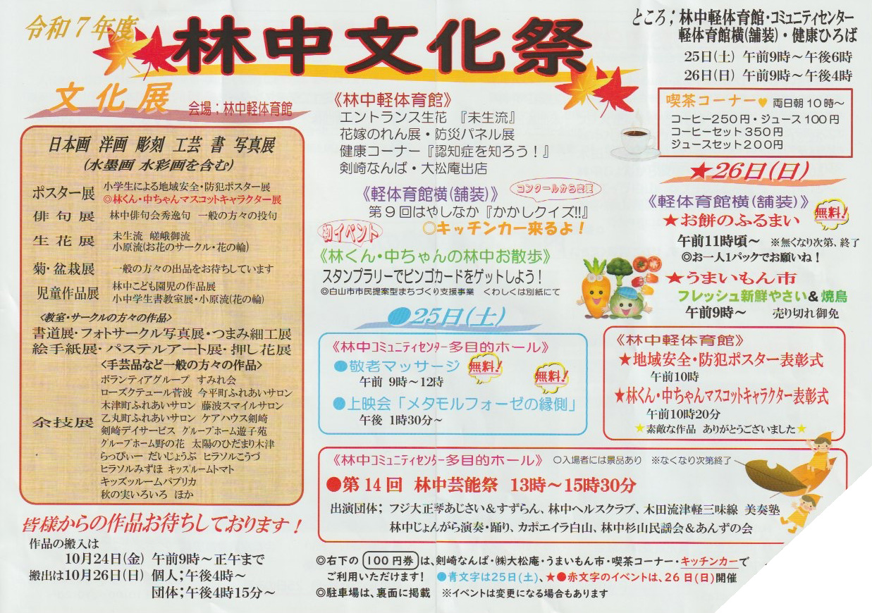 令和7年度 林中文化祭 10月25日(土)・26日(日)開催しました