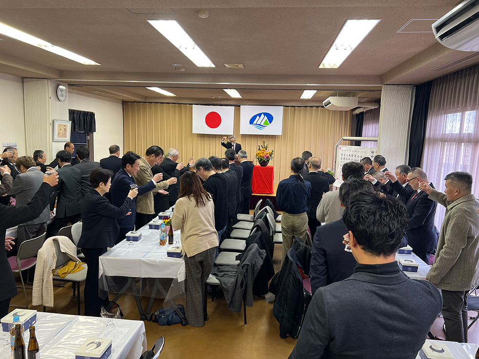 祝宴に際し、谷間会長は天候に恵まれたことを喜び、今年1年を「一致団結」して、楽しく元気に活動していくための協力を参列者一同と確認し、乾杯を行いました。